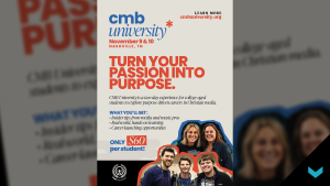 Help us connect with college-aged students (and their families!) who are passionate about making an eternal impact for Christ and would thrive in Christian media. A simple but powerful way to support CMBU is by airing promotional spots on your station(s) during a two-week window of your choice in September or October. Your on-air support helps ensure that young creatives — the future of our industry — know this opportunity exists. If you have questions about CMBU promotional resources, please contact Jon Wood, CMB Communications & Members Services Manager.