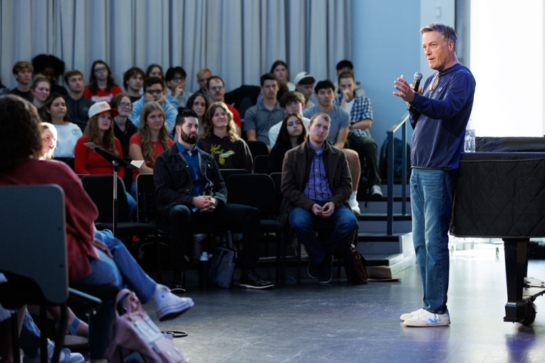 Grammy Award winner Michael W. Smith visited Liberty University’s School of Music along with his wife, Debbie; his son and producer/film scorer, Tyler; and fellow producers Jake Halm and Tedd T. The team led multiple classes for the Michael W. Smith Center for Commercial Music, equipping and mentoring students with industry tips and advice. Smith also performed alongside School of Music groups during the school’s fall Concert of Praise on Monday night.